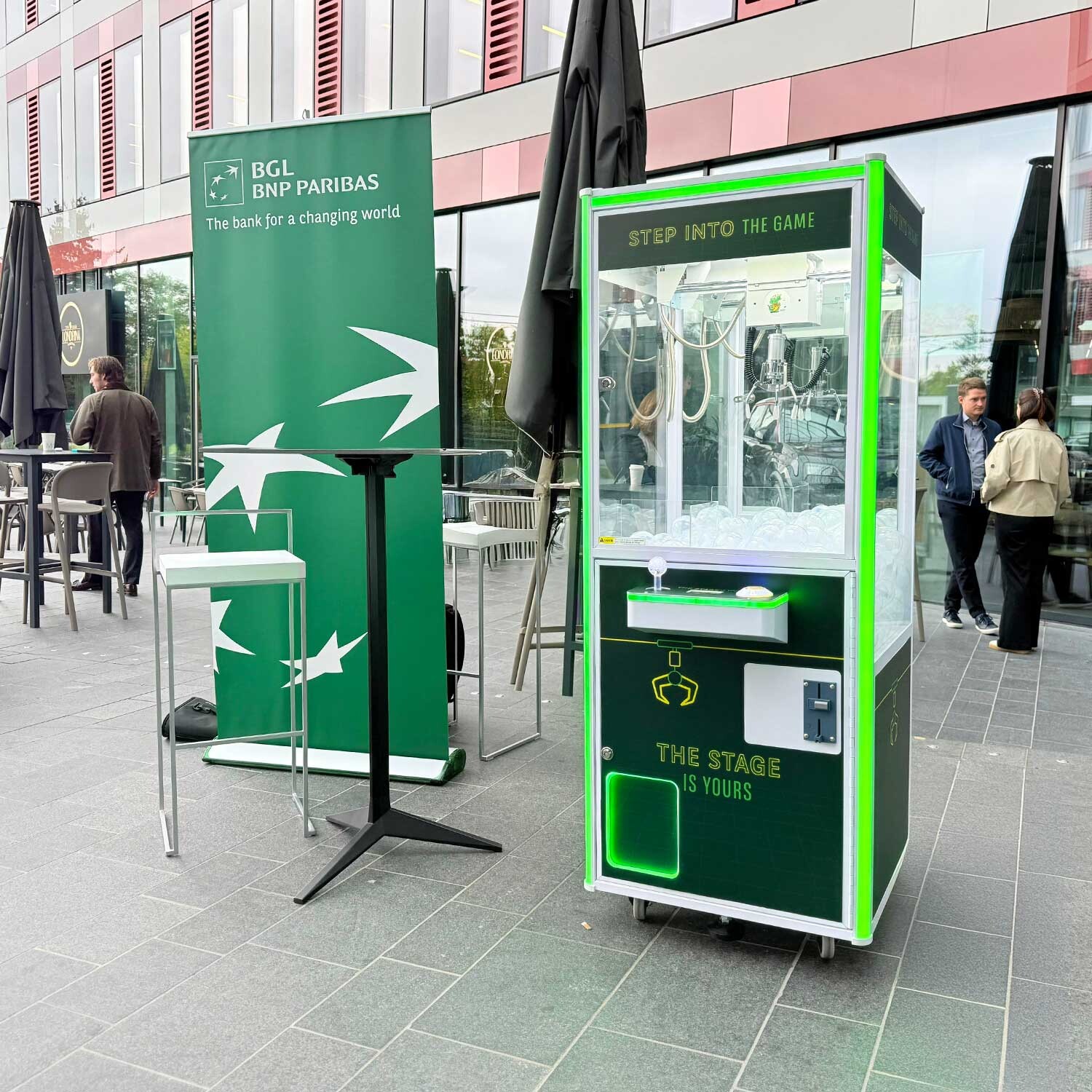 Today, URBAN PUB diverts this attraction in the service of your communication… A unique and engaging indoor street marketing concept! The clip machine is suitable for almost any type of event as long as it has a festive and friendly character : events/fairs, team building, trade shows, BtoB/BtoC events, supermarkets, shopping malls, stores, etc. Depending on your needs and your event, it will play a specific role: As a real entertainment/attraction during