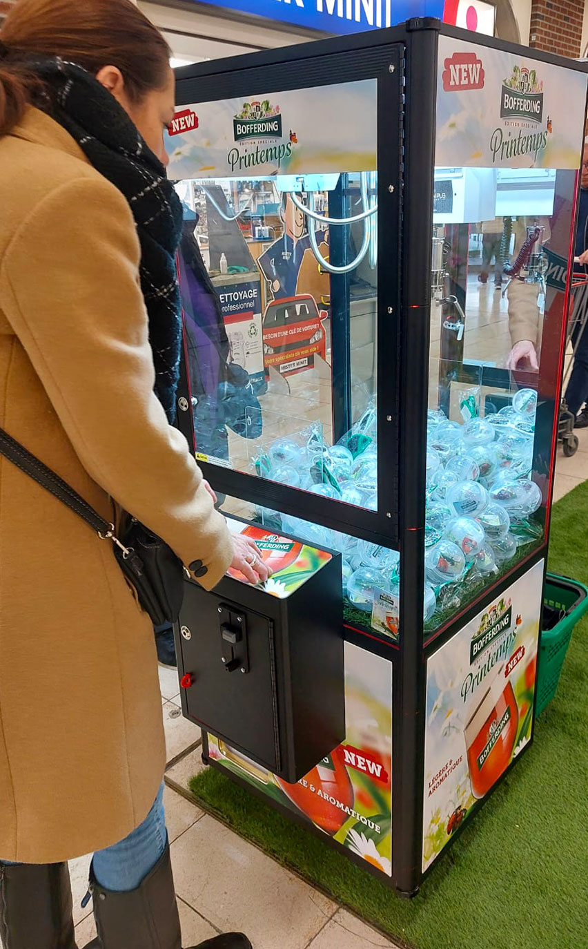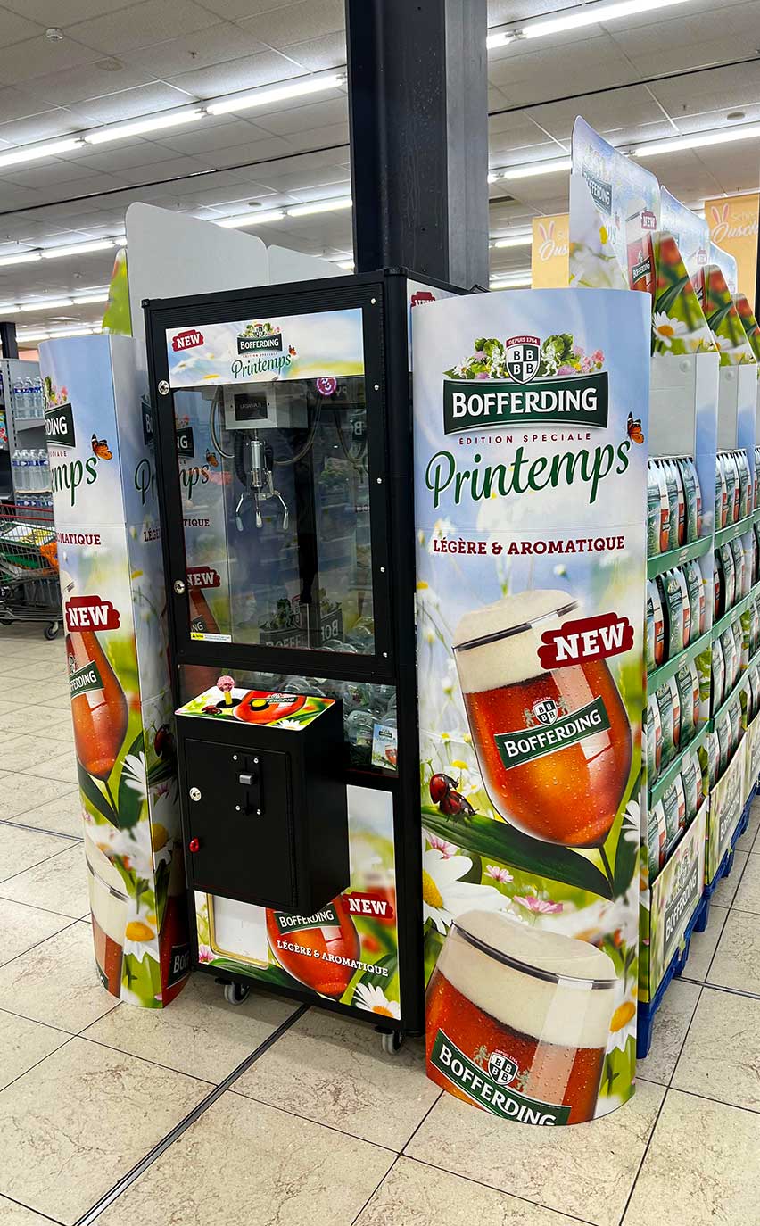 The installation of the claw machine, decorated in the brand’s colors and integrated into a spring decor, captured the attention of consumers and reinforced the visual identity of the beer. This immersive approach helped create an engaging and memorable customer experience.