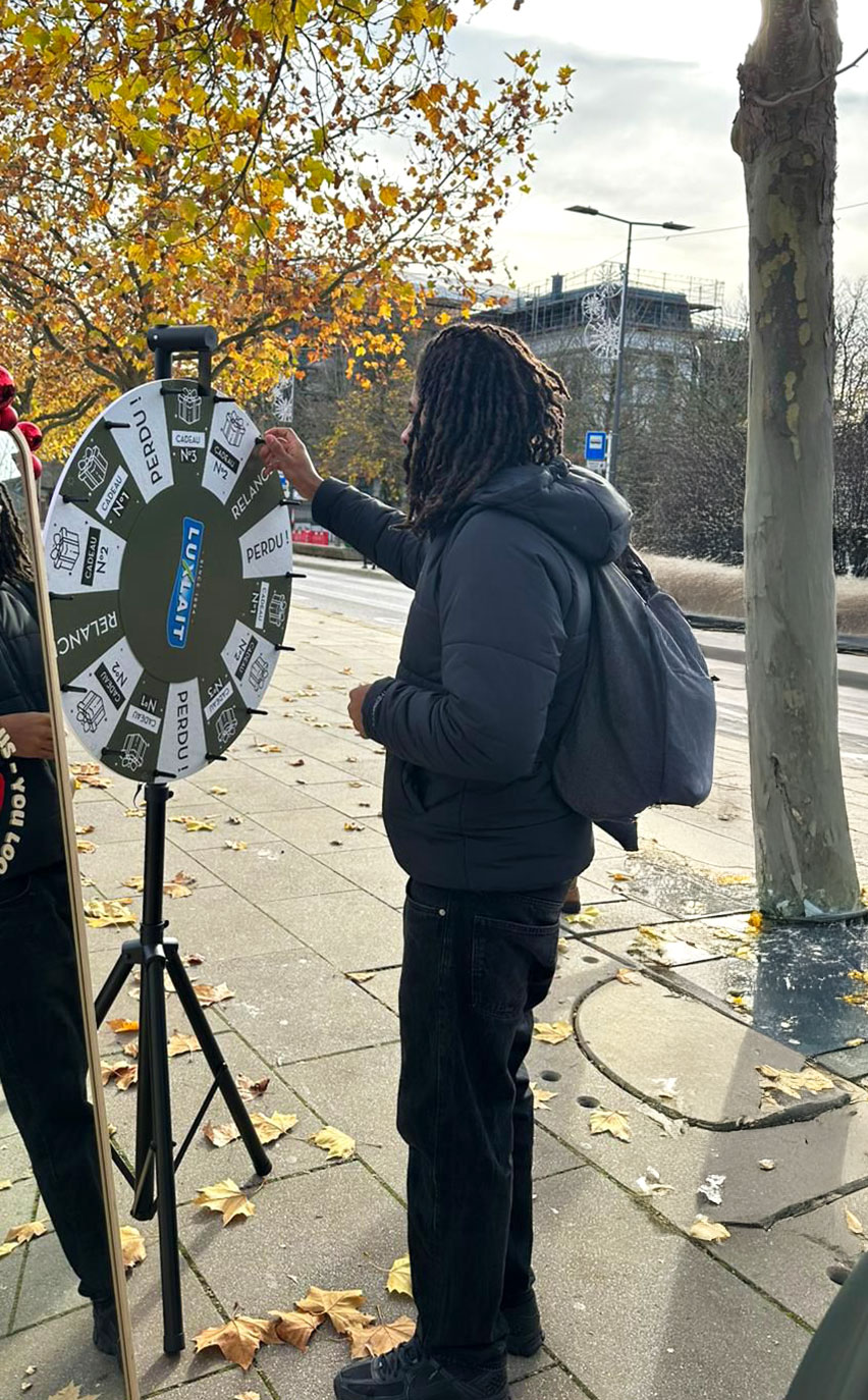 The goal: to recreate the warm, festive atmosphere and offer an experiential brand experience capable of capturing the attention of a young, mobile audience particularly receptive to on-the-ground marketing. Thanks to a customized tricycle, a high-impact dual display, and a fun, interactive element like a wheel of fortune , our campaign generated strong engagement while highlighting the richness and deliciousness of Luxlait Eggnog. Hostesses offered free, friendly tastings, creating a genuine moment of connection in the public space.