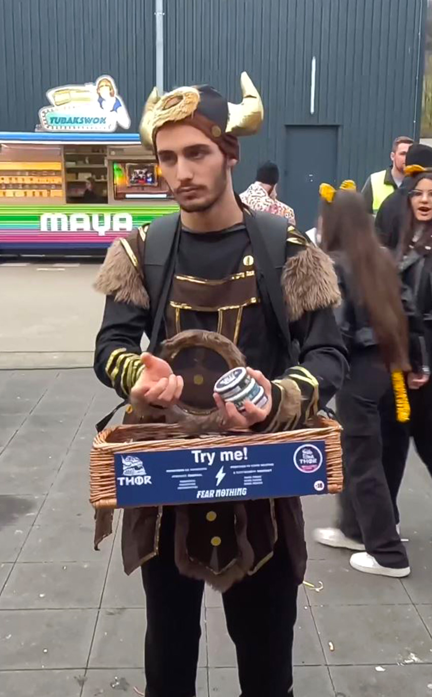 To arouse curiosity and optimize the rate of engagement of participants, we had to rely on theatricality: Viking outfits, a digital backpack with a promotional video, a basket with nicotine sachet samples…