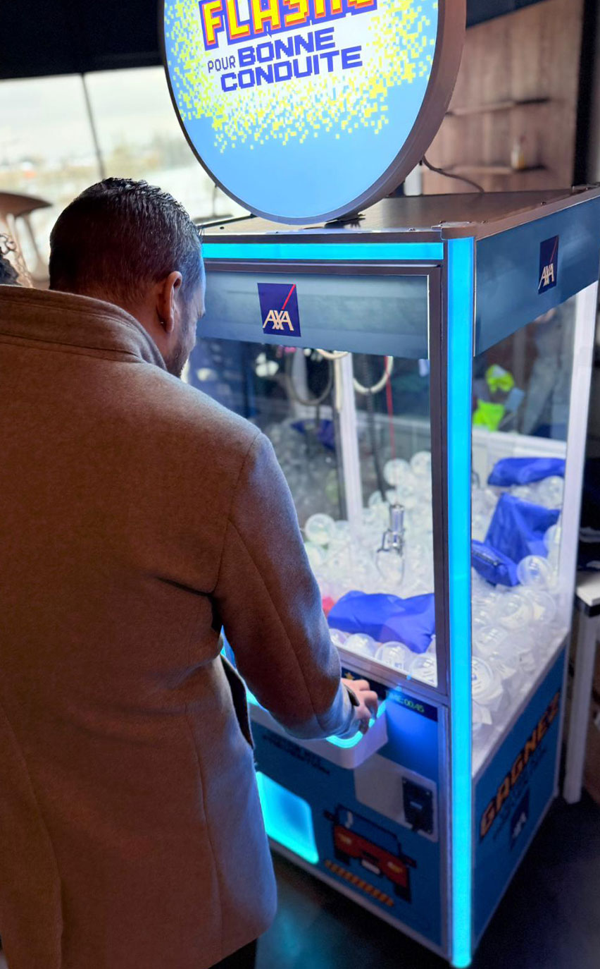 Pour renforcer l’impact et maximiser l’engagement, nos équipes ont animé plusieurs supports expérientiels : une machine à pince personnalisée, un photobooth thématisé “radar” et une signalétique incitative, favorisant la participation et la mémorisation du message. Cette action de marketing événementiel, combinant pédagogie, animation commerciale et expérience ludique, illustre l’expertise d’URBAN PUB dans la création d’activations terrain à forte valeur ajoutée, génératrices d’interactions qualifiées, de visibilité et d’impact pour les marques en points de contact physiques.