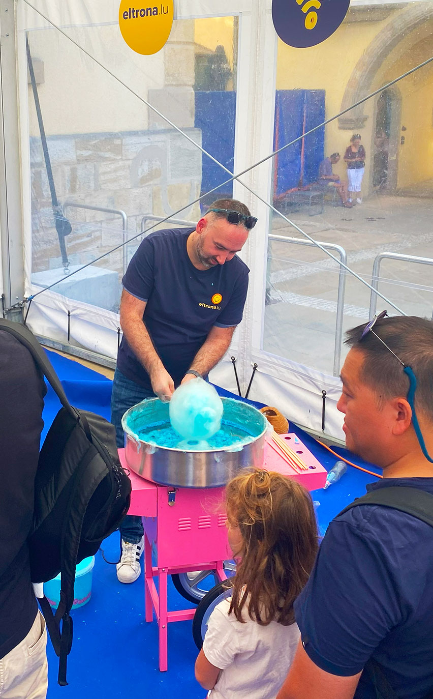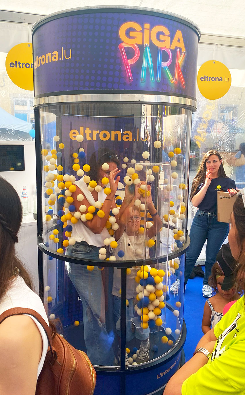 Pour cet événement rassemblant des milliers de nouveaux arrivants au Luxembourg, nous avons une nouvelle fois transformé l’espace en un GiGA PARK attractif, combinant animations ludiques et interactions humaines mémorables. Nos hôtes et hôtesses, spécialement formés pour l’occasion, ont animé avec enthousiasme le Plinko, la soufflerie géante Twister, le stand barbe à papa et le photobooth, tout en assurant des missions essentielles : accueil et inscription via tablettes, collecte de données qualifiées, dynamisation des files d’attente et accompagnement vers le stand commercial d’Eltrona pour favoriser la conversion.
