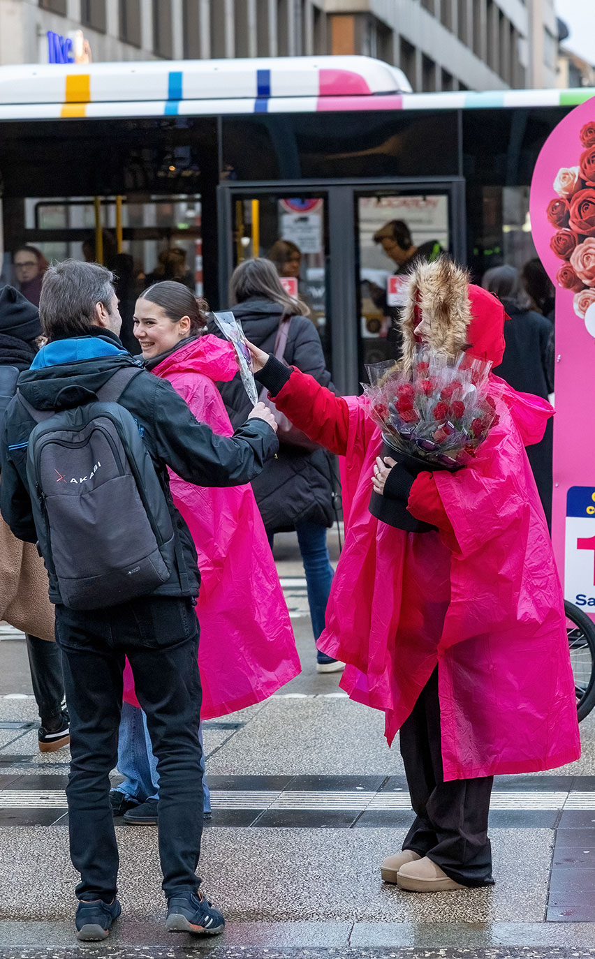 Dès l’aube, nos équipes terrain ont investi des lieux stratégiques à forte affluence comme la Gare de Luxembourg, Hamilius, le Shopping Center Cloche d’Or et Belval Plaza, transformant l’espace public en une véritable brand experience immersive. Au total, 10 000 roses accompagnées d’un QR code ont été distribuées, redirigeant les passants vers une landing page dédiée afin de participer à un jeu concours exclusif.