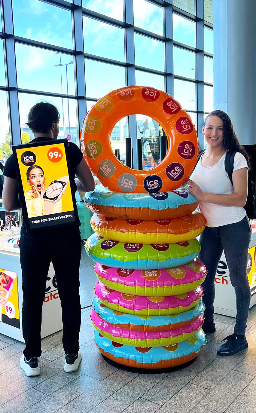 En parallèle, pour les voyageurs pressés qui n’avaient pas le temps de s’arrêter au pop-up store, un flyer informatif sur la gamme des montres Ice Watch leur a été distribué. Toujours dans l’objectif de renforcer un peu plus la notoriété de la marque.