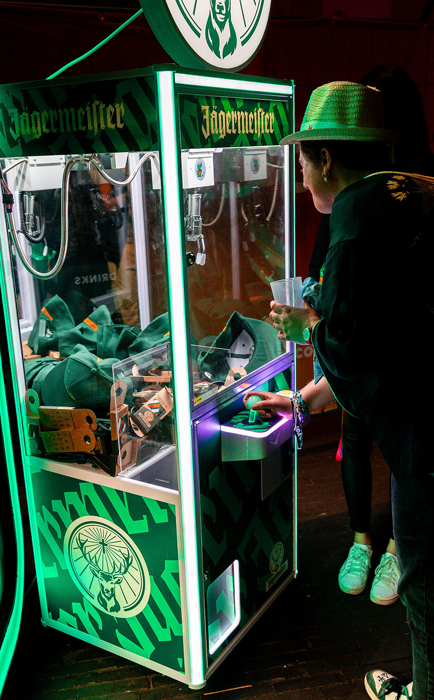Notre mission : créer une activation de marque percutante en plein cœur du festival, capable de capter l’attention de milliers de festivaliers. Grâce à une équipe d’ambassadeurs de marque dynamiques, 100 % brandée aux couleurs de Jägermeister, nous avons orchestré une opération sur-mesure mêlant interactions, animations immersives et distribution de goodies. Entre nos machines à pinces lumineuses, le bar mobile de shooters givrés et une multitude de jeux participatifs, notre stand s’est imposé comme l’un des spots incontournables du LOA 2025.