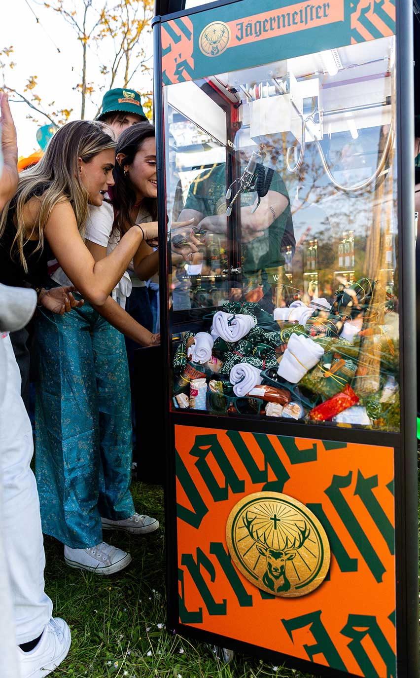 A l’achat d’un shooter jagermeister, les visiteurs du jour se voyaient remettre un jeton pour gagner des goodies en jouant à nos machines à pince personnalisées.