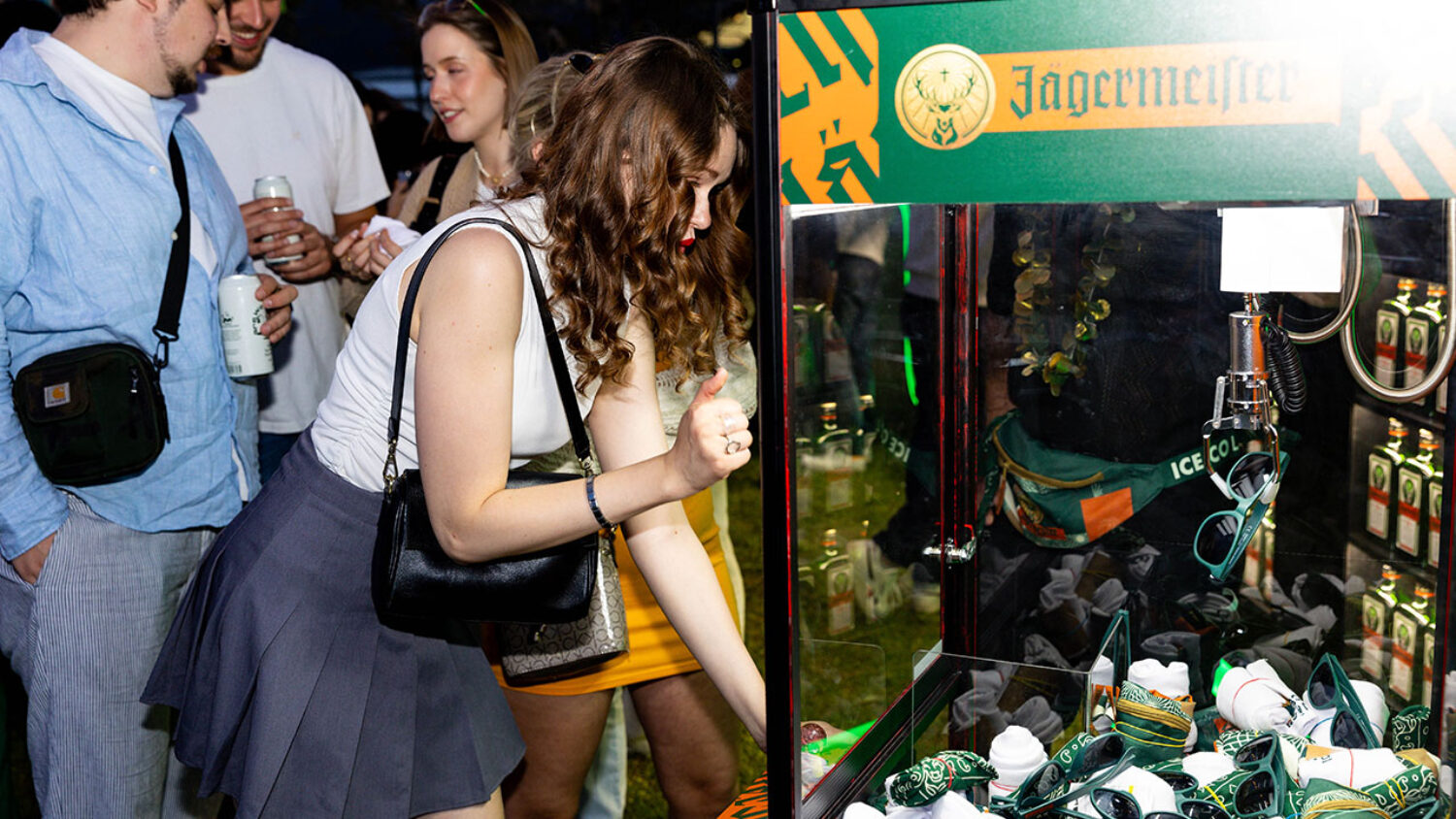 A l’achat d’un shooter jagermeister, les visiteurs du jour se voyaient remettre un jeton pour gagner des goodies en jouant à nos machines à pince personnalisées.