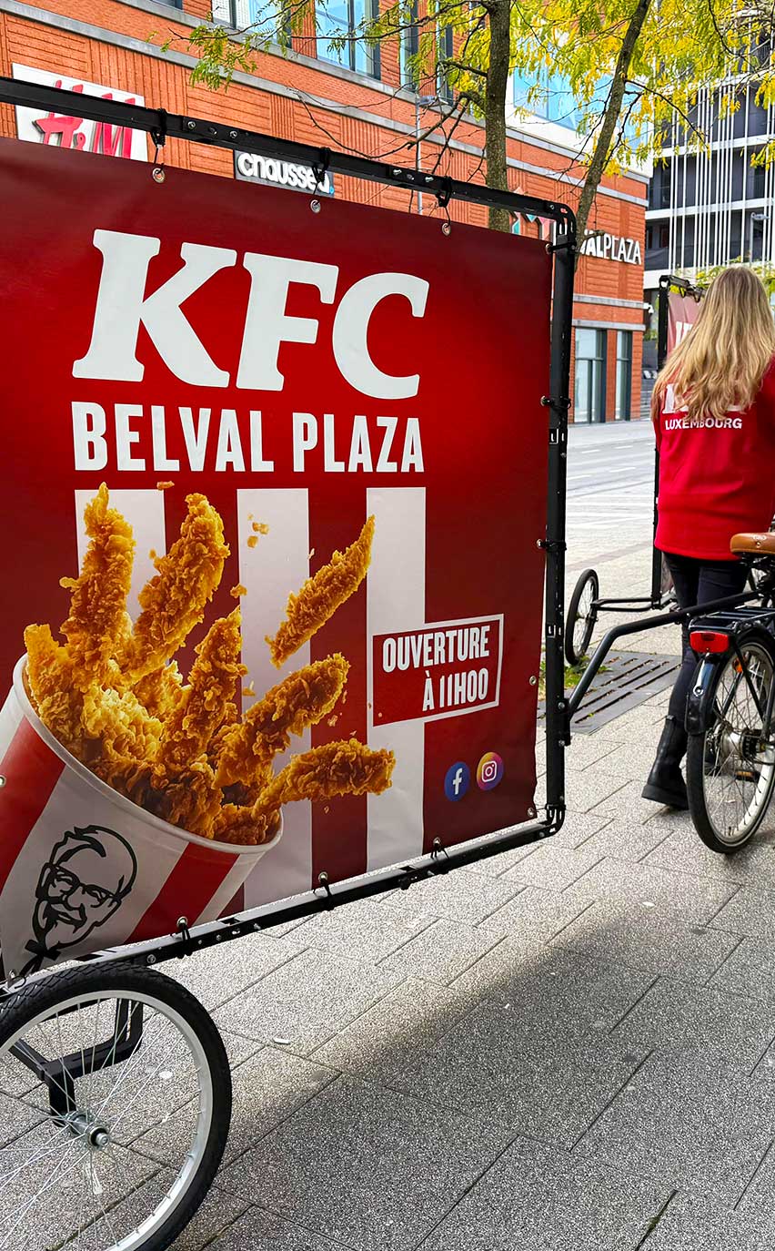 Pour l’ouverture tant attendue du premier KFC au Luxembourg, à Belval, CD PUB a mobilisé son expertise en street marketing pour créer un événement d’envergure, marquant durablement le public. Nous avons conçu un dispositif stratégique avec des animations et supports adaptés pour capter l’attention et susciter l’engagement autour de cette inauguration.